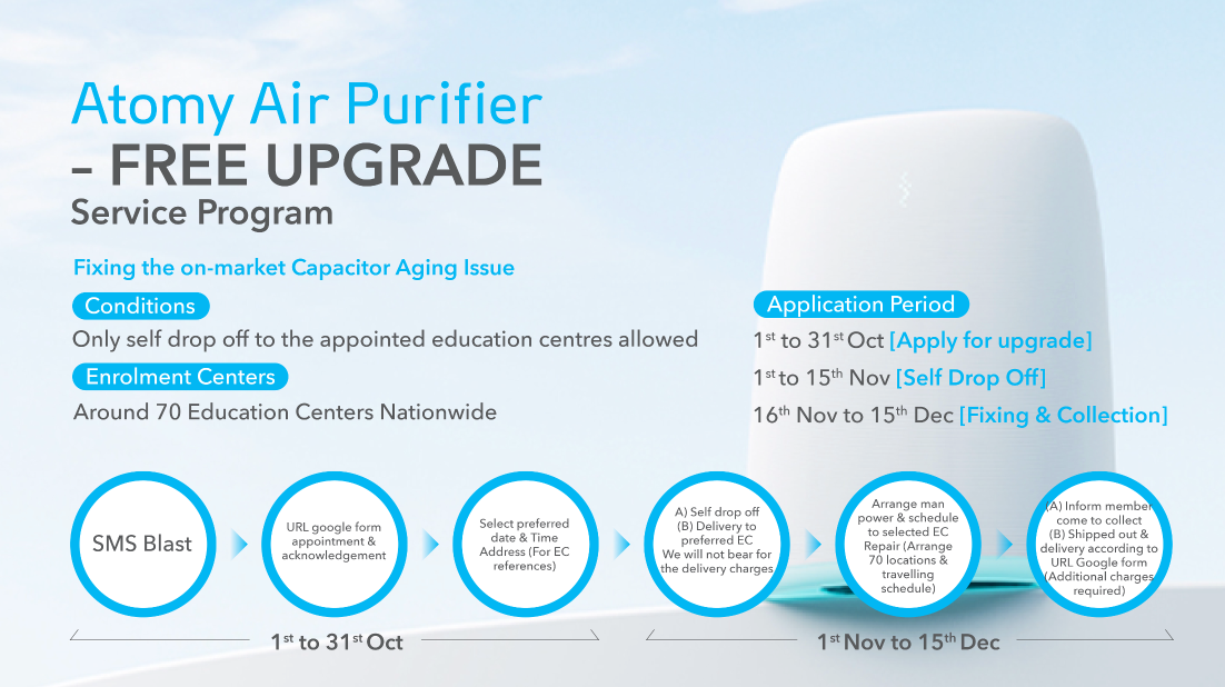 If you purchased your Atomy Air Purifier before 26 May 2025 from the Atomy Malaysia Shopping Mall, you may be entitled to this program (terms & conditions apply).