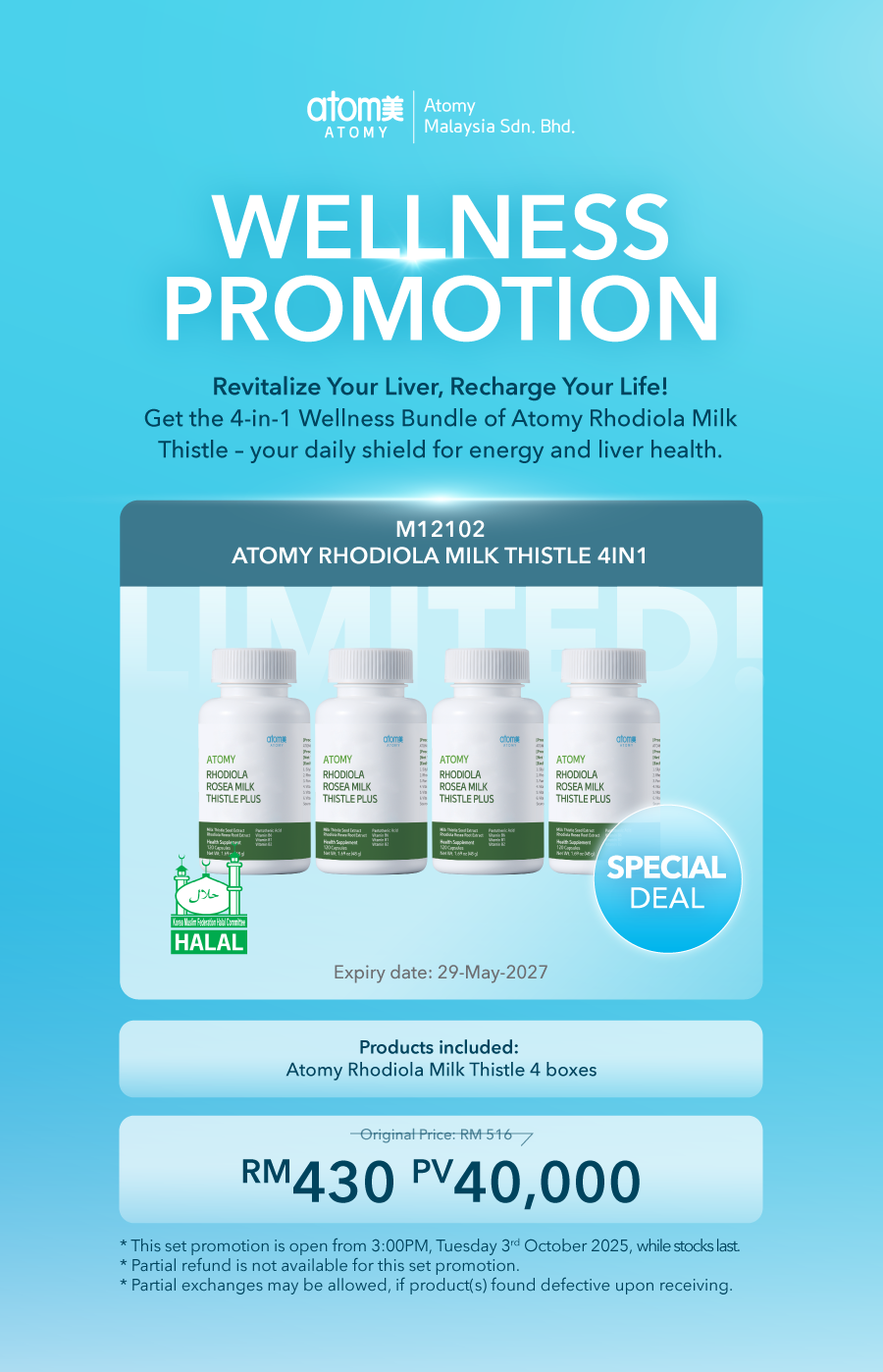 From Friday 10.00 am – Monday 10.00 amKindly provide details below to us via email at atomy_my@atomypark.com