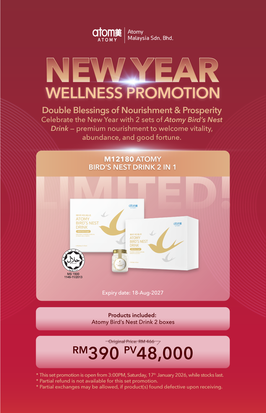 From Friday 10.00 am – Monday 10.00 amKindly provide details below to us via email at atomy_my@atomypark.com