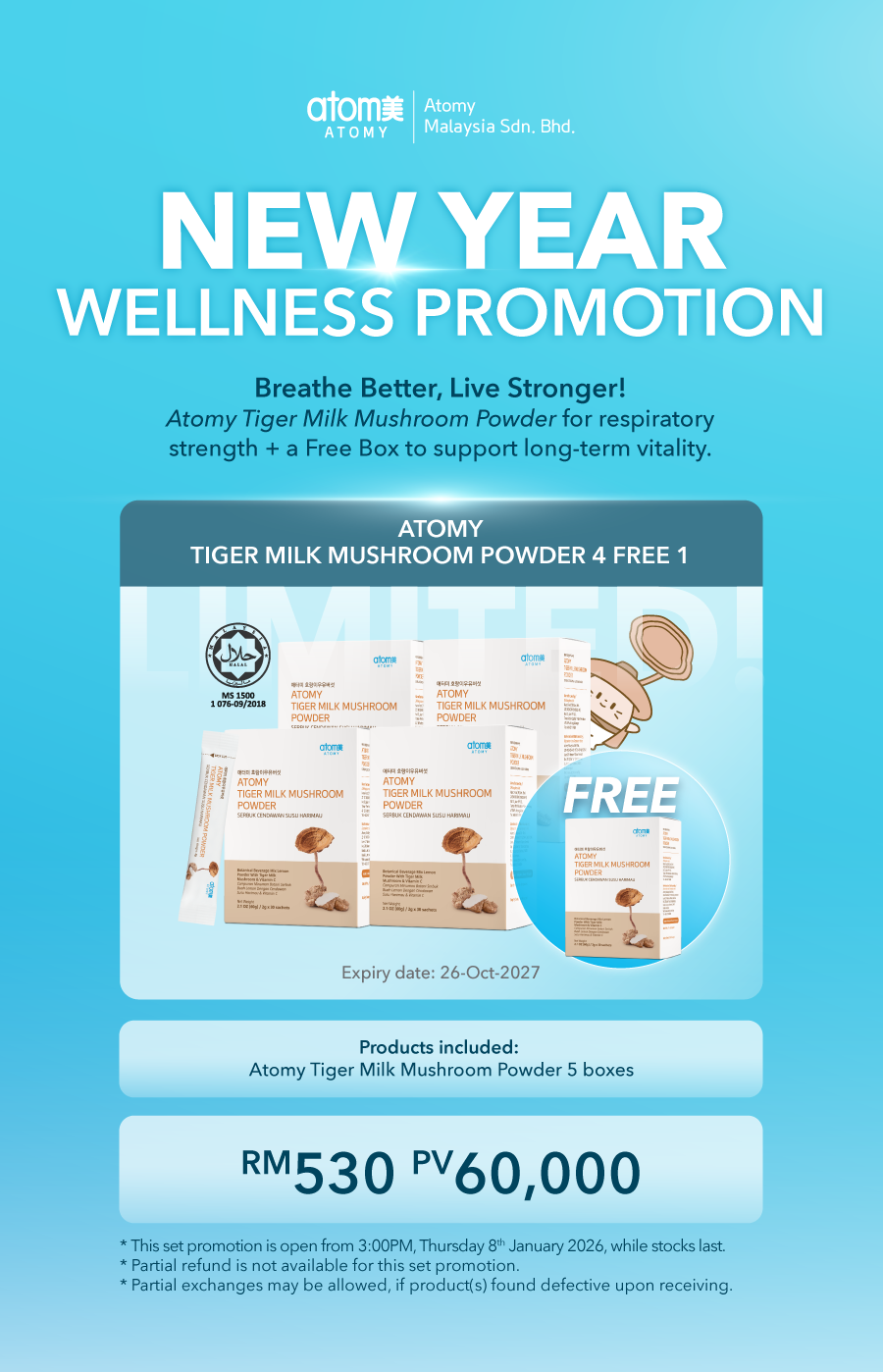 From Friday 10.00 am – Monday 10.00 amKindly provide details below to us via email at atomy_my@atomypark.com